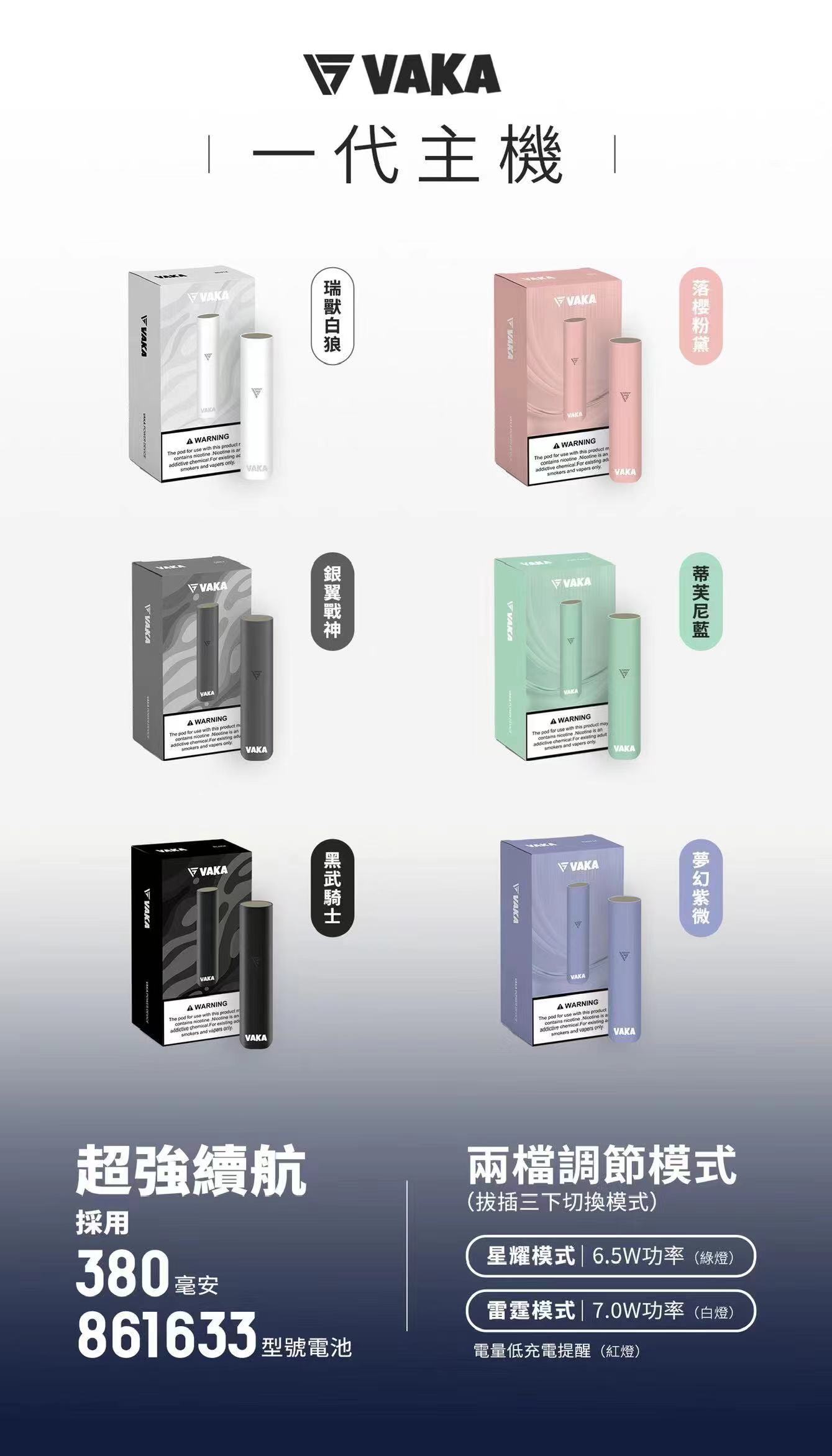 【VAKA一代通用主機-電子煙主機-通用一代煙彈產品參數】